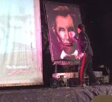 Parker-Varney Elementary School students were wowed by today’s performance by Amazing Hero Art’s Rob Surette. In under an hour, Rob painted a portrait of Abraham Lincoln, one of American history’s greatest heroes, as he inspired the kids with the message that they can be great, too. Now the school has a beautiful painting to hang on the wall to remind them of it!