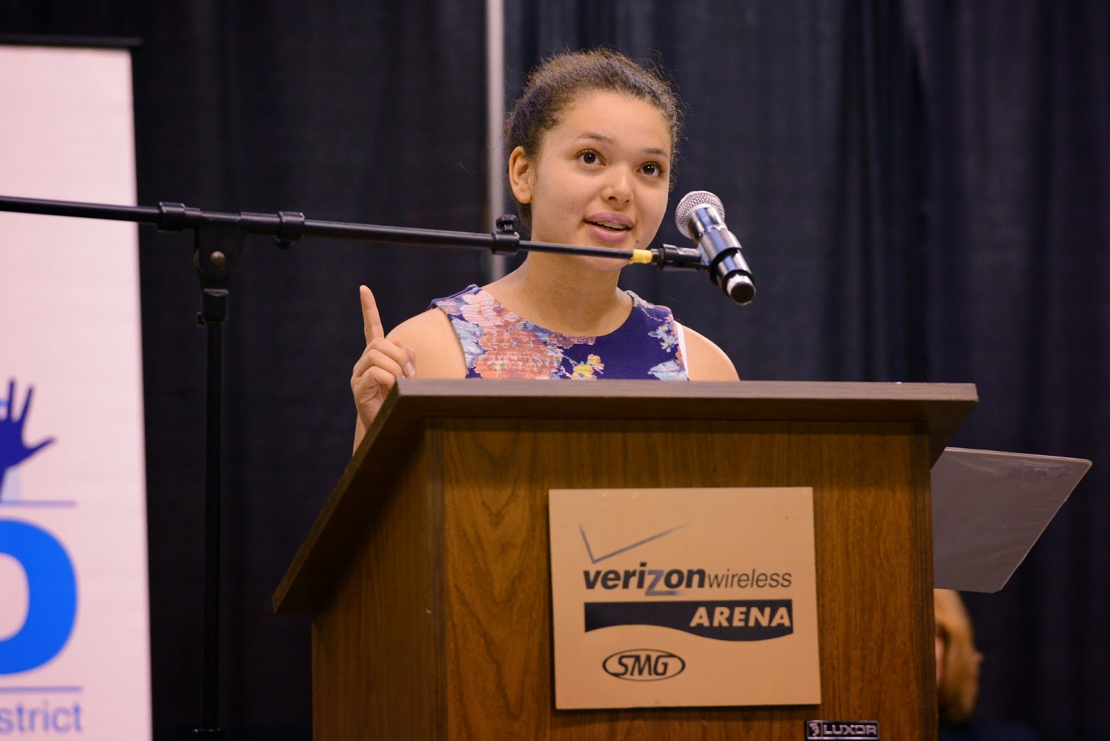 West High School junior Karina Ithier implored the teachers to trust in their students’ abilities and potential, to help them overcome the struggles.