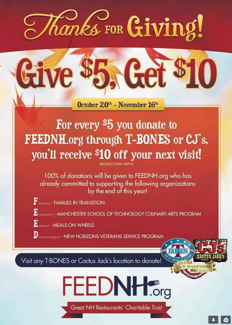 he Great NH Restaurants’ Charitable Trust drive to raise funds for local non-profit organizations is ending November 16: