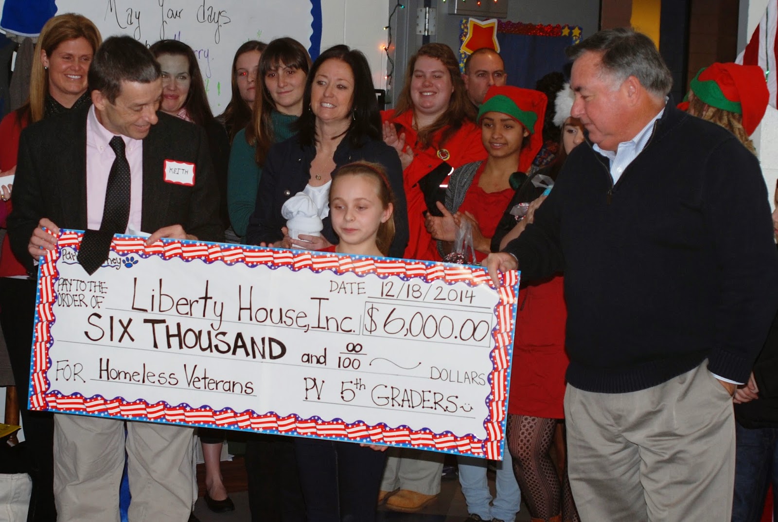 What does it take to raise $6,000 in under three weeks? The fifth graders at Parker-Varney Elementary School proved it can be done with hard work and focus on a cause. They held several fundraisers for Liberty House, a transitional housing community for homeless American veterans in Manchester. The students’ efforts included candy cane gram sales, a Polar Express movie night, a district-wide dress down day for all employees and staff, and collecting donations online through gofundme.com.