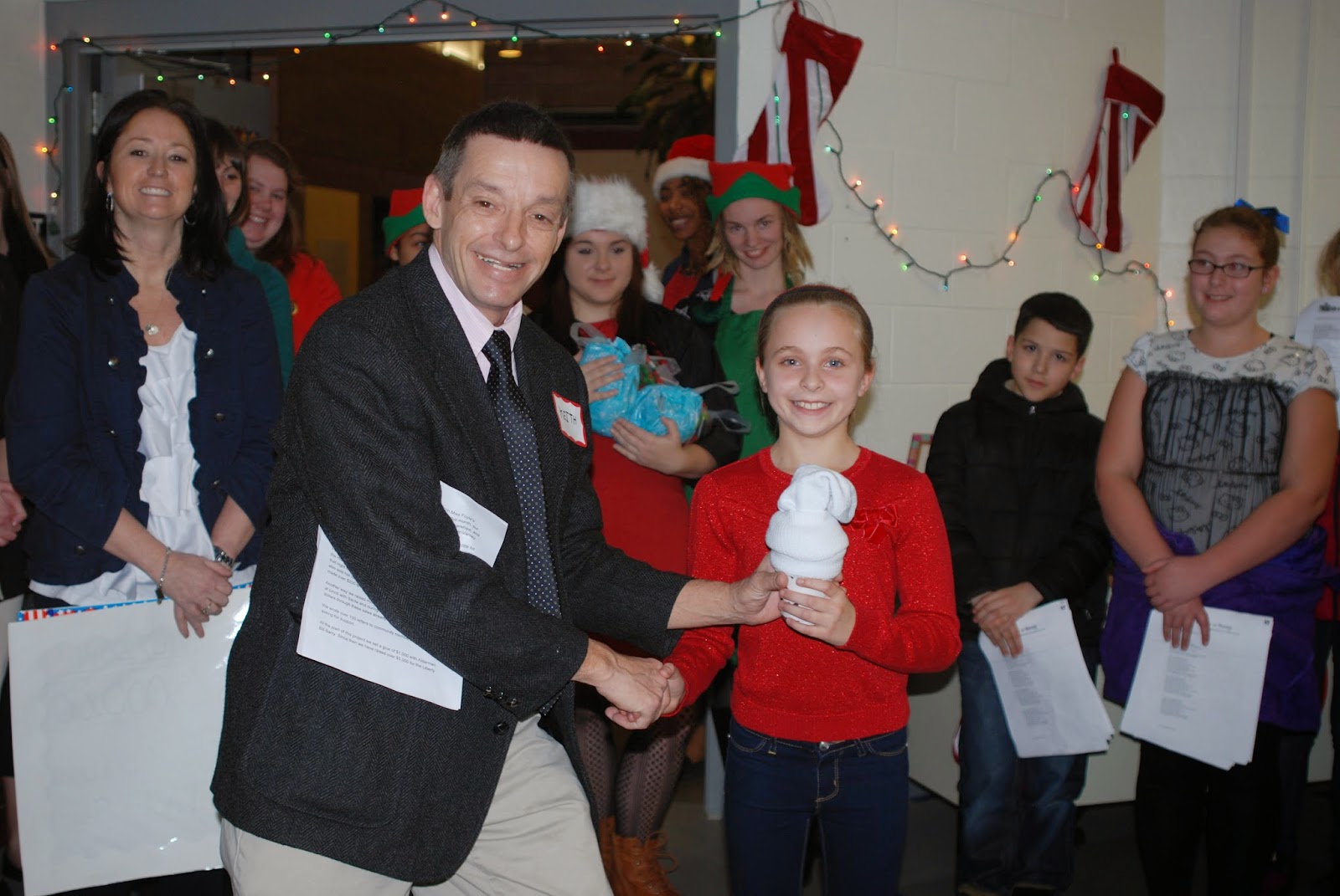The fundraiser ended officially today when the Parker-Varney students hosted a luncheon at the Manchester School of Technology for the residents and staff of Liberty House. There, they sang Christmas carols, ate a delicious lunch prepared by MST Chef Mike Holfelder and his culinary arts students, and presented the executive director of Liberty House with a check and other gifts.
