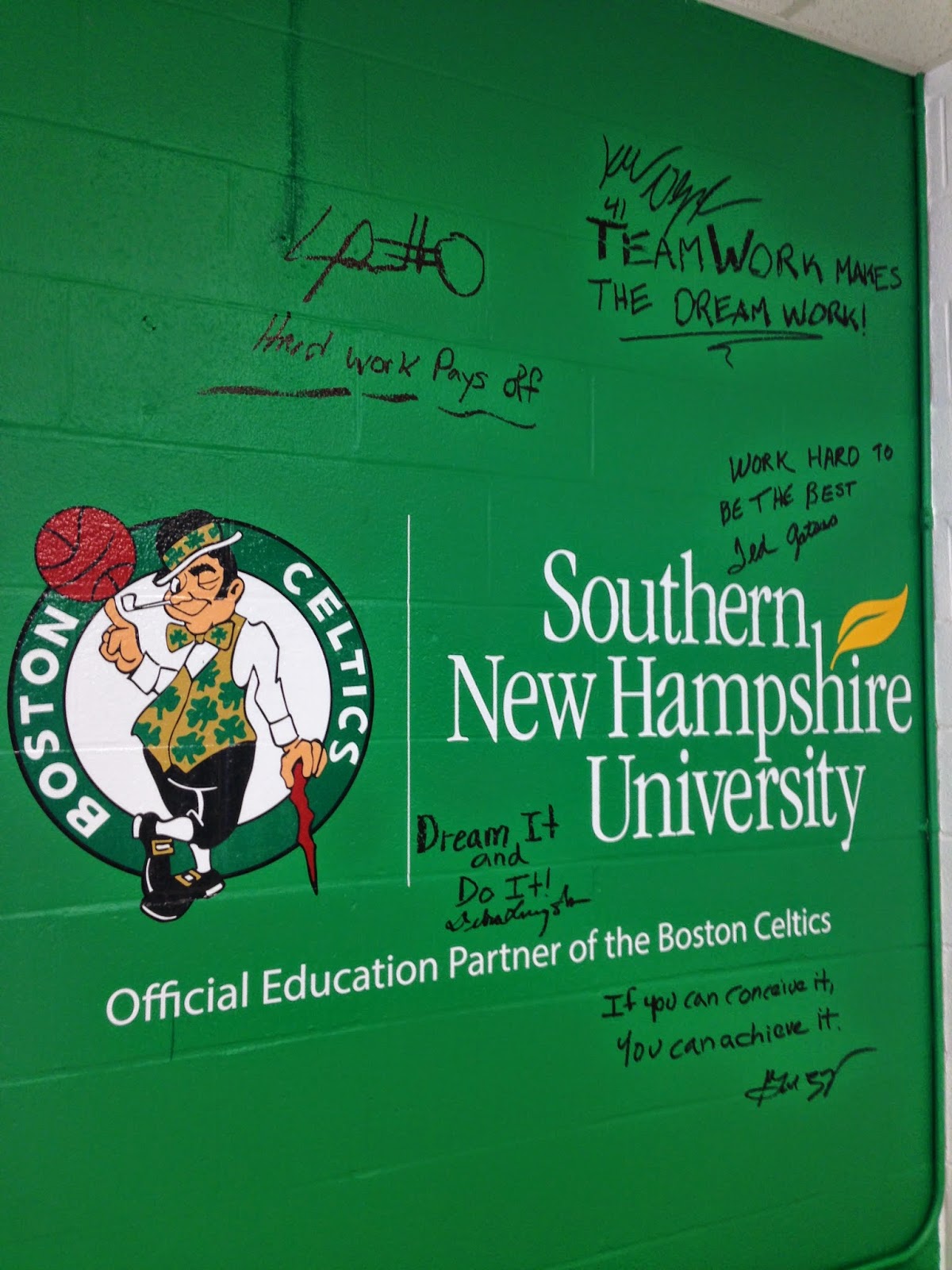 | The Celtics players, Mayor Gatsas, Gregg Mazzola and Dr. Livingston signed the computer lab wall |