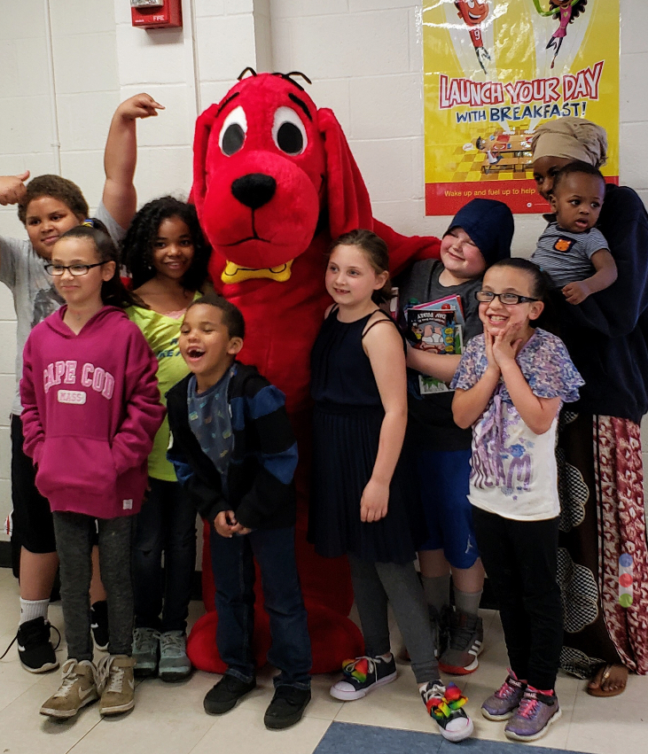 The kids especially loved having a visit from Clifford The Big Red Dog and the donated books from Scholastic that they were able to take home to keep.